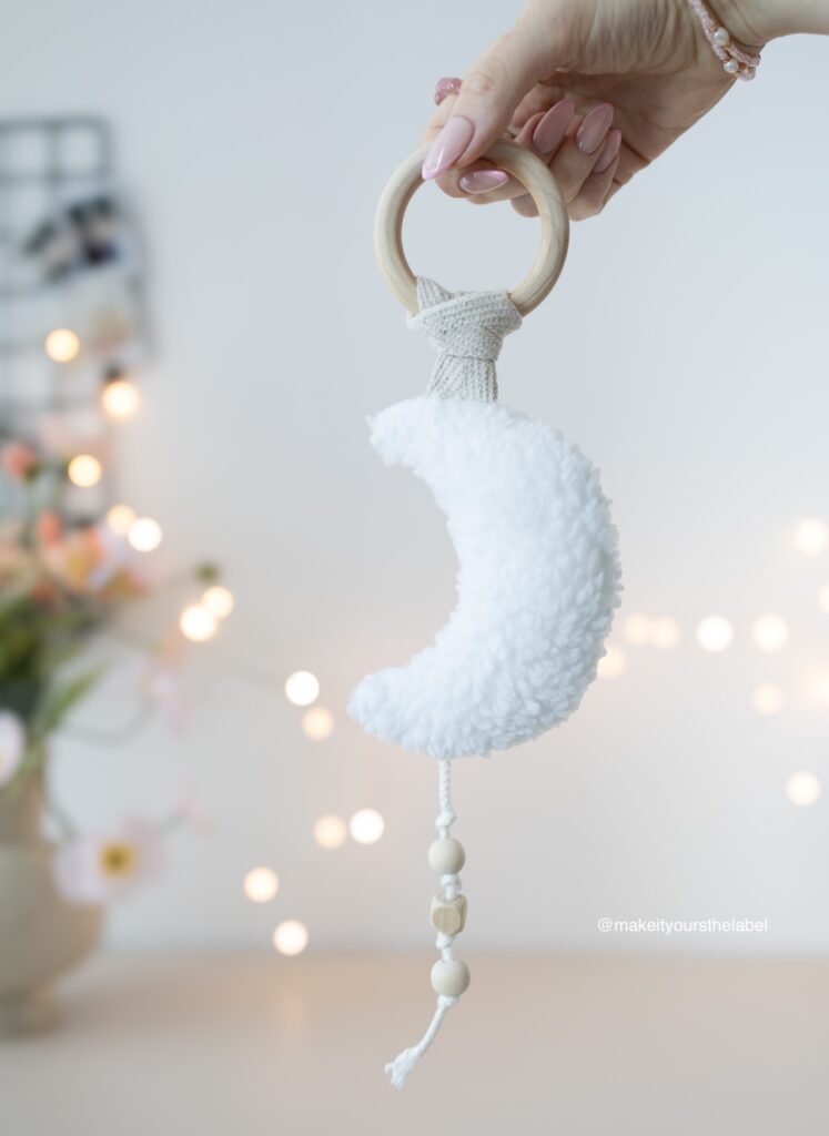 1. Beißring mit Halbmond Stoffanhänger nähen